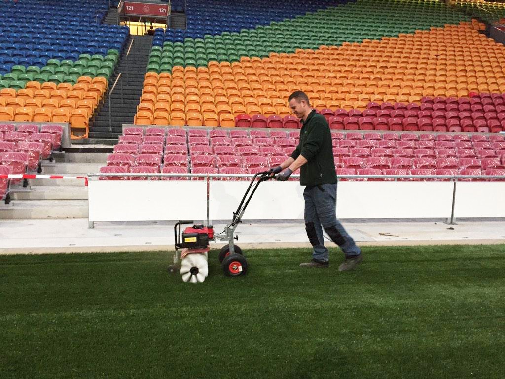 The special fibers in the brush prevent any damage to the artificial grass fibers in the turf while still performing the proper cleaning and comb action. It will make the seams less visible, remove debris, comb the fibers, and brush the infill (if applicable).